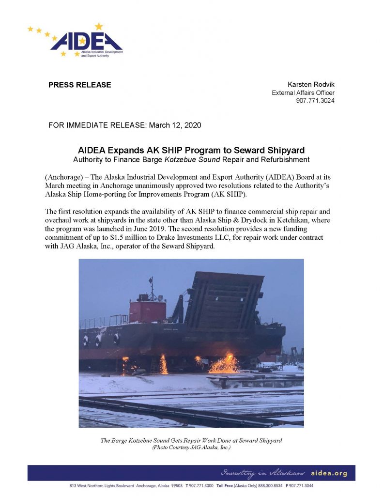 AIDEA Expands AK SHIP Program to Seward Shipyard